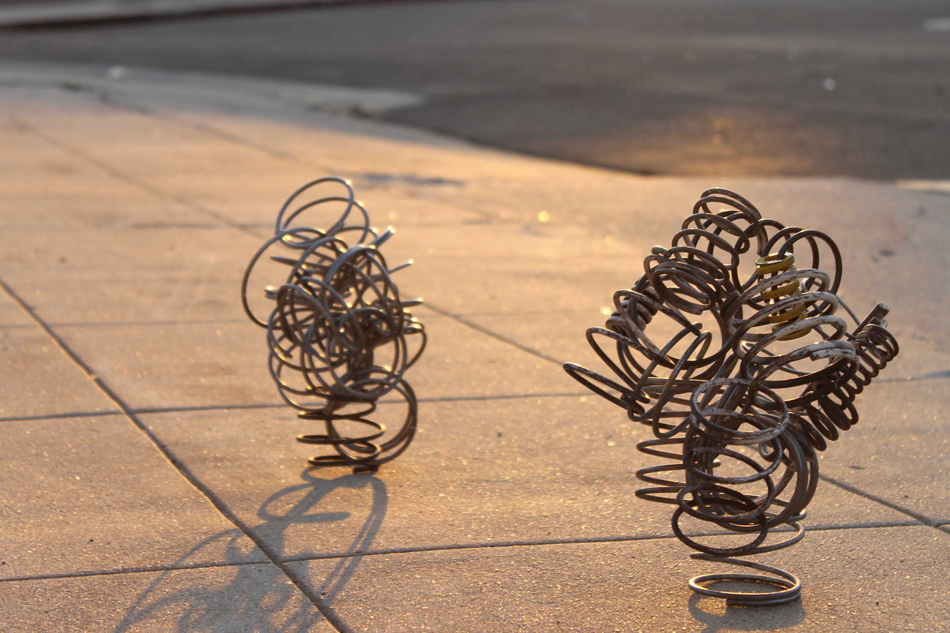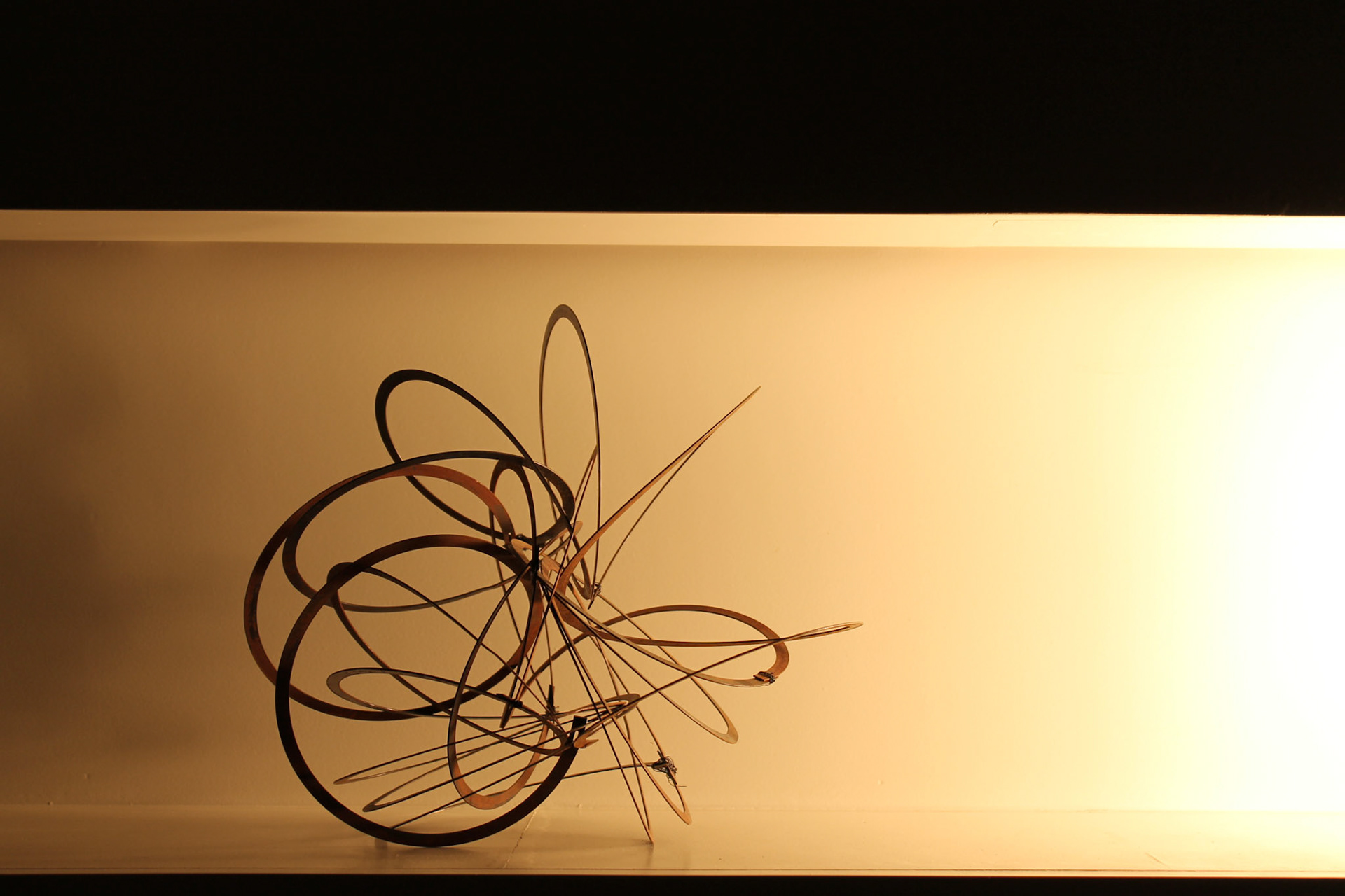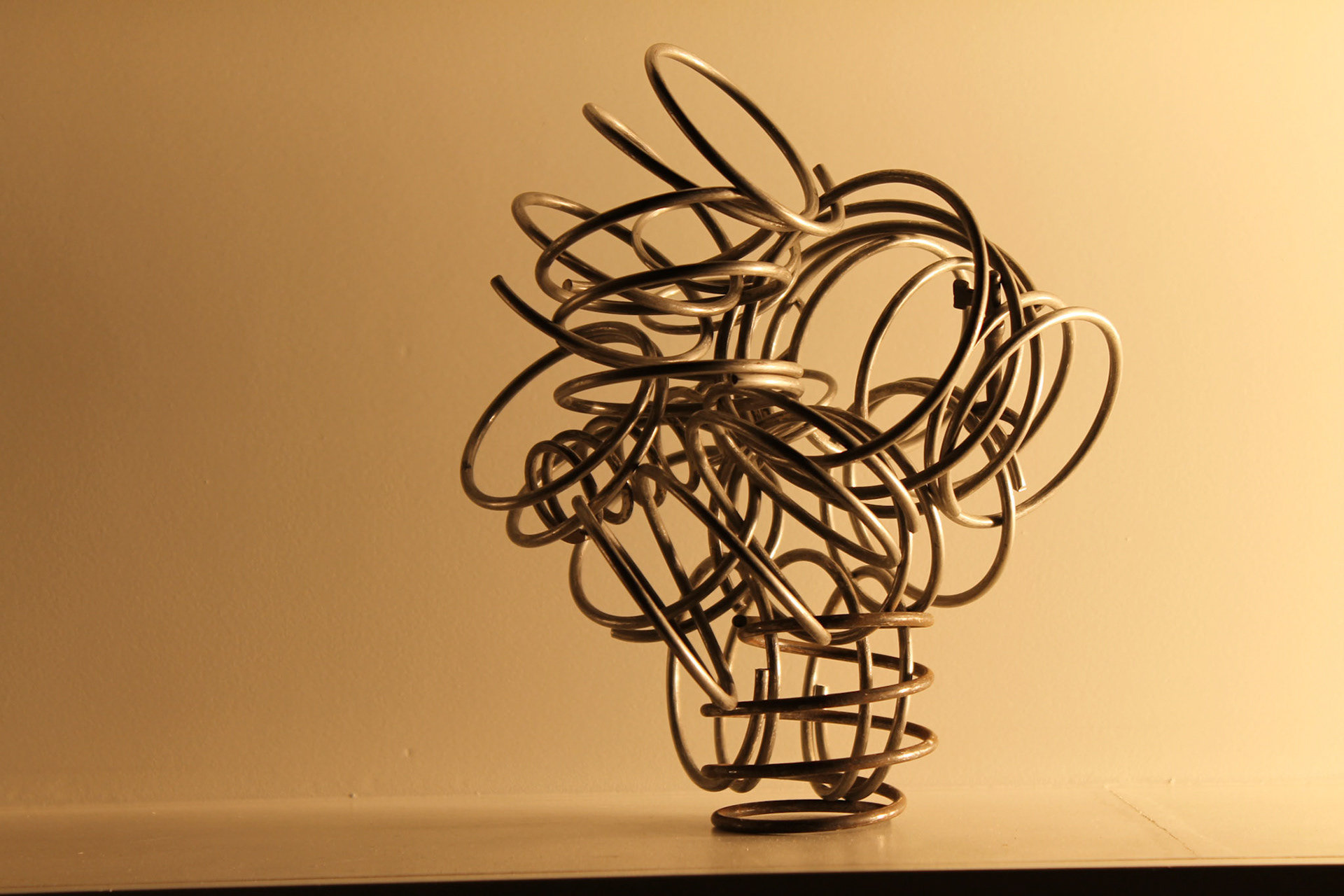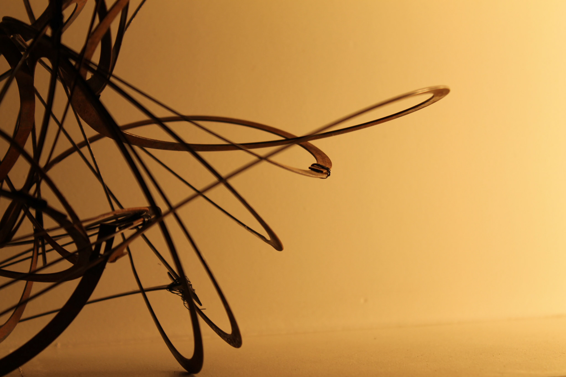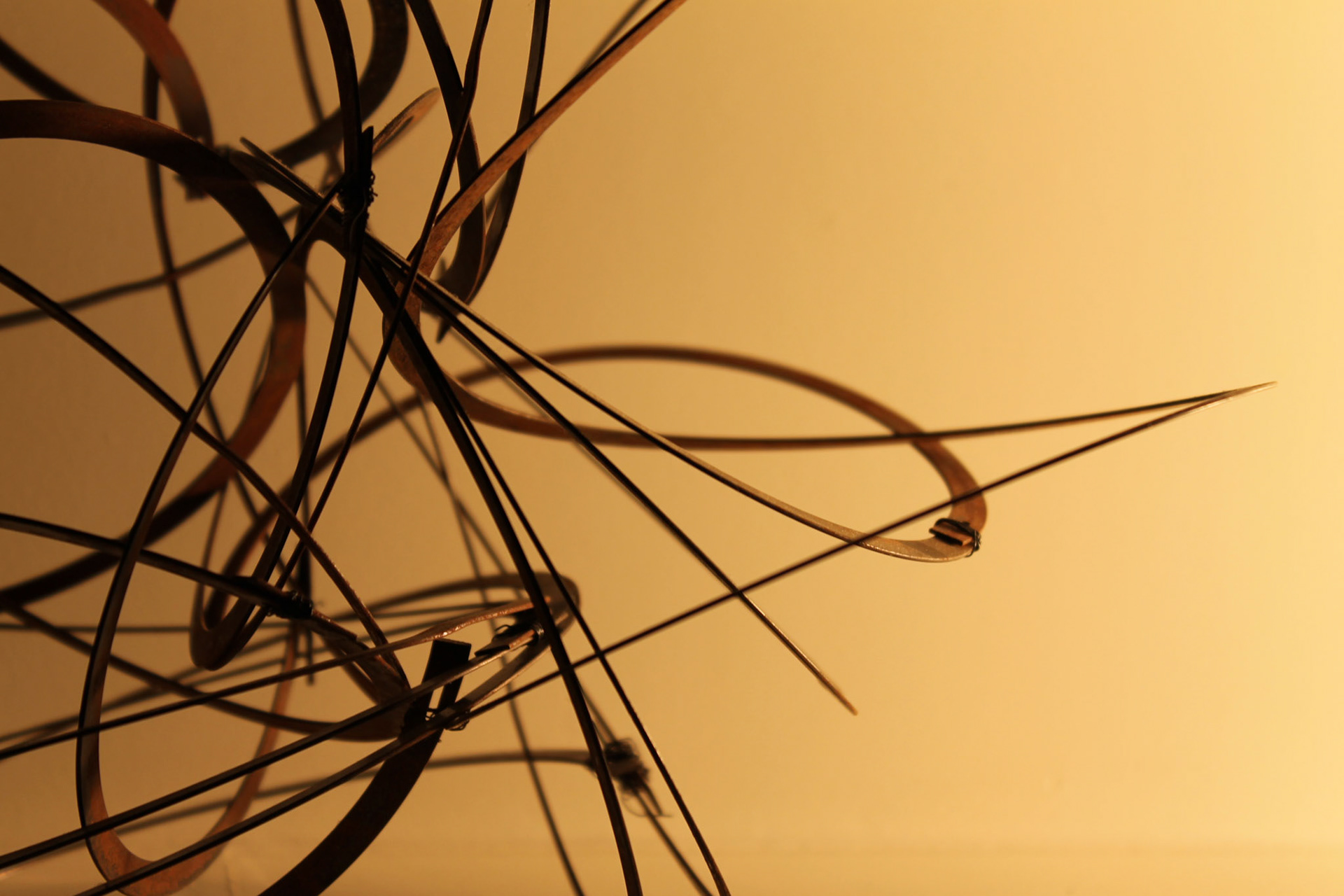 This series was inspired by the intricate structure and strength of tumbleweeds. Each sculpture tests how repetition and tension act to strengthen an object. The resting equilibrium achieved by mere twisting and turning of the materials gives the sculpture a degree of complexity and stability that function as an embodiment of the force of movement at the same time.